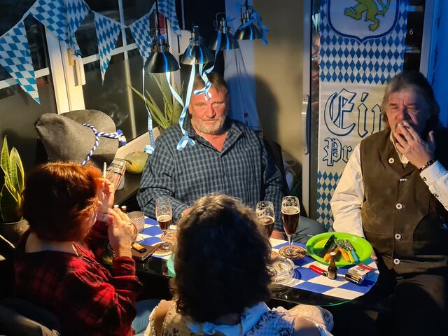 Aufgrund der Rauchergaststätte dürfen wir keine Speisen anbieten, aber es kann, darf und soll sich gern jede/jeder was bei umliegenden Lieferdiensten bestellen oder auch mitbringen. Besteck ist hier zumindest vorhanden ;-)